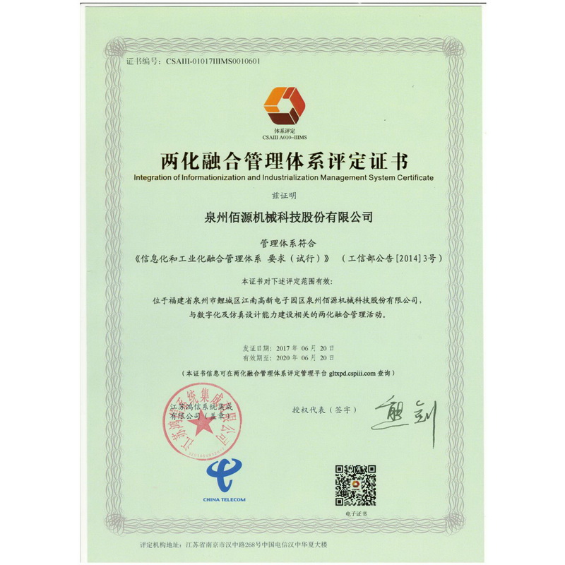 兩化融合貫標證書