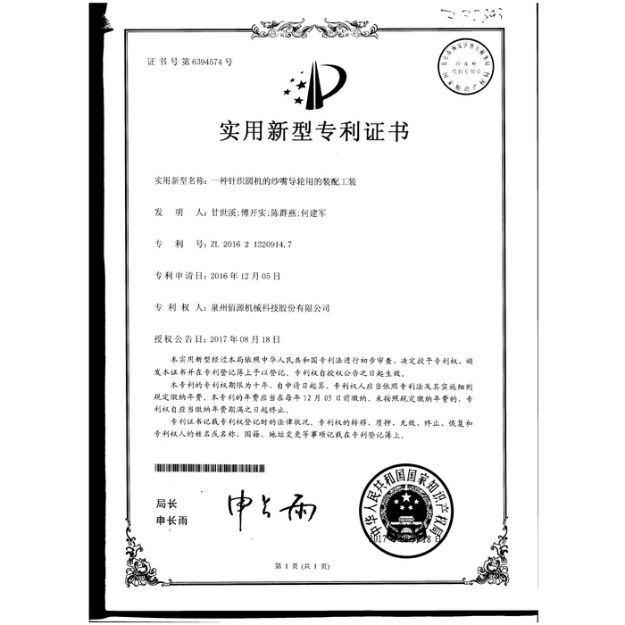 實用新型 一種針織圓機的紗嘴導輪用的裝配工裝